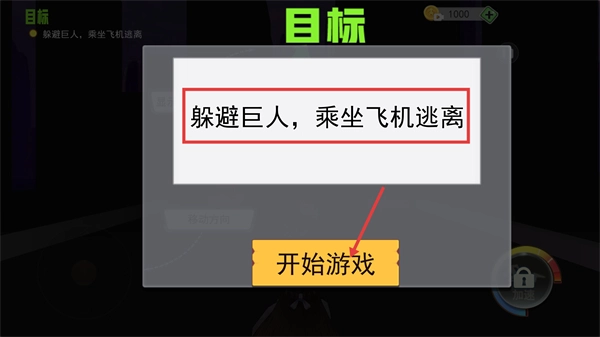 1、核心任务已明确为【躲避巨人-乘坐飞机逃离】,点击【开始游戏】按钮就能进入逃生关卡。