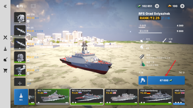 2、在这里可以挑选喜欢的战舰购买。