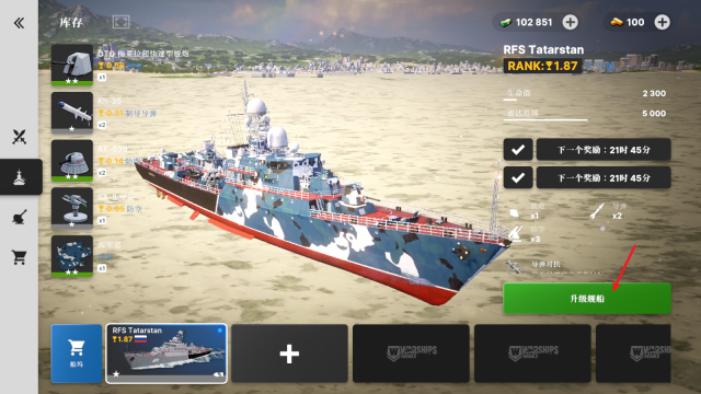 3、随后返回战舰界面,点击升级选项就能增强战舰的性能。