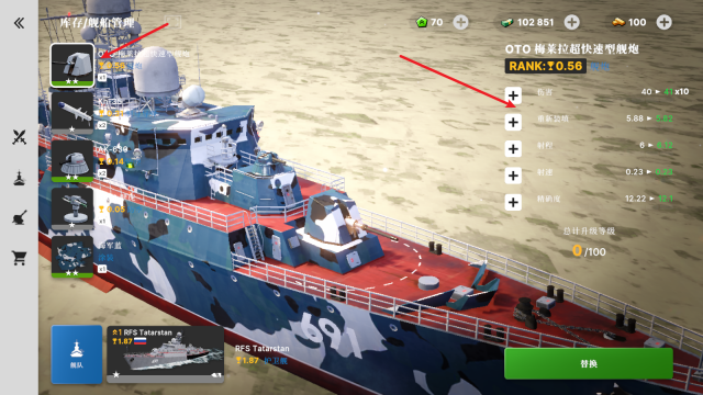 1、点击左侧的战舰图案就能进入相应界面,在该界面中点击“+”号按钮即可打开战舰购买页面。