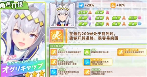 1、首先如果你是动画党,按照自己的XP来选就行。如果你是强度党,首选【小栗帽】,这个角色草地和泥地全能,除了短距离外全能,这意味着可以用来跑90%的比赛。非常万金油,固有技能效果为终点前200m爆发冲刺,是个非常不错的继承技能。