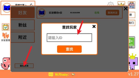 2、然后找到添加好友的选项,输入好友的ID来进行搜索。