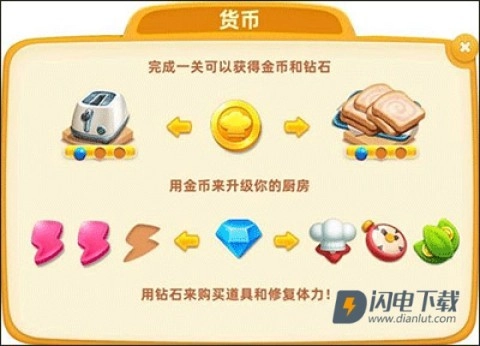 1、金币:通关时获取的金币能够用来升级设备与食材,以此提升你的生产力。