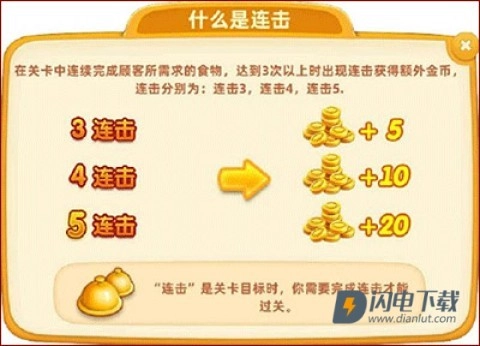 4、连续上菜:通过连续操作来获取额外金币,达成目标营业额。