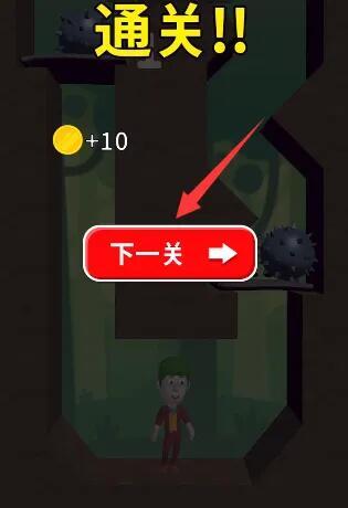 铁球没砸到小哥哥就能过关,点击【下一关】继续游戏。