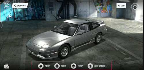 可以看到不少可供我们自由挑选使用的汽车零件,借助这些零件,我们能把汽车改造出自己想要的外观。