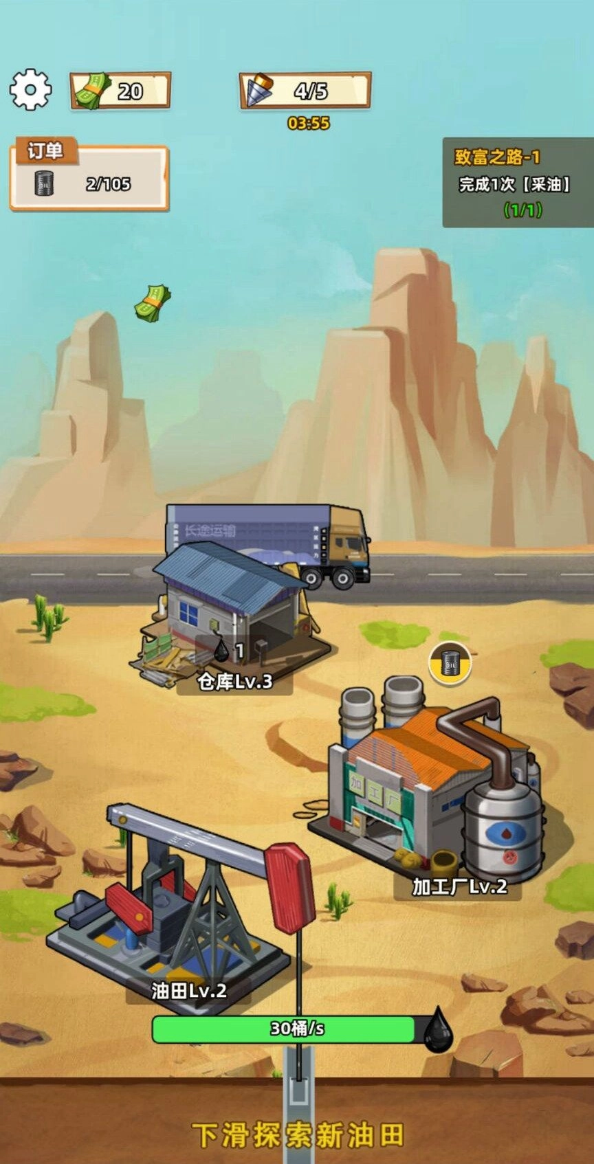 《挖油日记》是一款以模拟开采油矿为核心的策略经营游戏,玩家的核心目标是通过挖掘获取石油资源——开采量越大,越能助力自身在游戏世界中拓展发展空间。游戏内设计了丰富有趣的任务体系与多样化的玩法机制,操作门槛低且极具趣味性,能让玩家沉浸其中,尽情探索挖油主题的游戏世界。