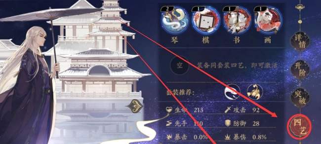 2.进入名士详情页面,选择四艺
