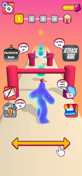 3、难度挑战:这里的每个果冻人都有不同的技能,在跑酷时你会遇到不同的困难去挑战。