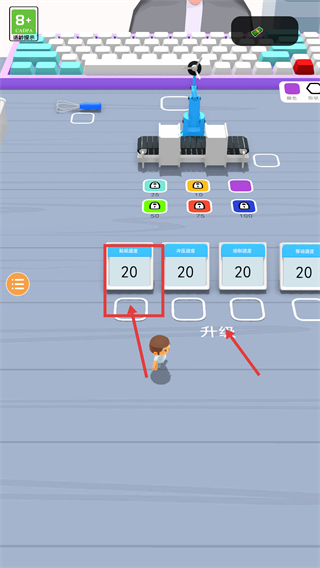 1、点击界面上标注着【20】的功能模块,对相应项目进行升级,解锁更多功能图标,从而扩大后续能够执行的操作权限。
