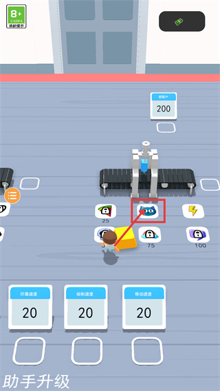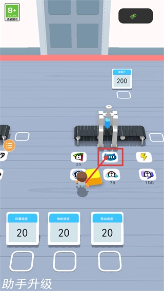 3、积累资源后点击对应功能图标完成【助手升级】,在提升操作效率的同时,留意界面中的【200】数值进度,为后续进阶环节做好准备。
