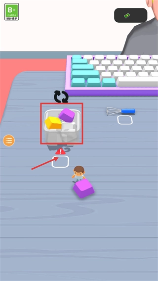 2、把方块放进指定容器中,利用【刷新】功能来调整方块的状态,按照指引完成当前物品的处理环节,推动流程向前进展。