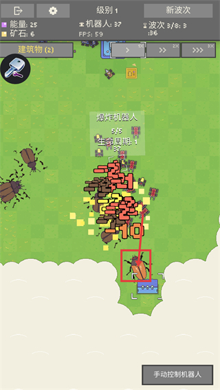 3、利用【爆炸机器人】攻击甲虫类敌人,注意其生命周期,高效清剿敌人保护基地。