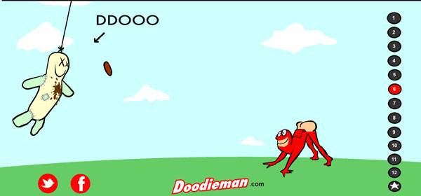 3、完成设置后,点击右侧标有1到12数字的按钮,玩家就能操控大便超人对人偶释放大便攻击。