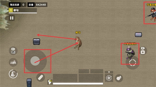 3、对战时要留意敌方单位,像【手雷自爆】-【人头收割机】这类,得通过左侧控制区域调整自己的位置来应对。
