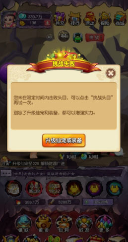 3、若玩家未能在规定时间内击败boss,系统将自动将玩家送回上一层关卡继续刷怪,直至玩家手动点击挑战boss为止!