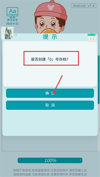 1、在提示界面点击【确定】按钮,创建编号为【0】的存档,以此开启人生模拟游戏的进程。