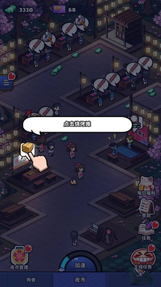 3、经营玩法:谁能以别具一格的方式经营夜市,充分展现你的操作技巧,按照自己的想法进行模拟经营,成为夜市的引领者。