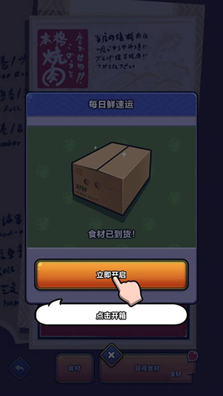 3、待弹出“每日鲜速运”的界面框后,点击其中的“立即开启”按钮,就能成功获取食材了。