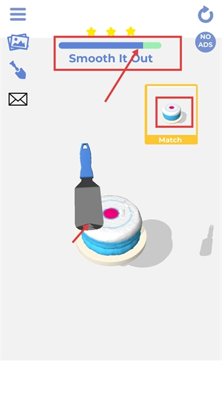 2、按照【Smooth-It-Out】的提示操作工具,打磨蛋糕表层,使其向右侧【Match】对应的蛋糕样式靠拢。