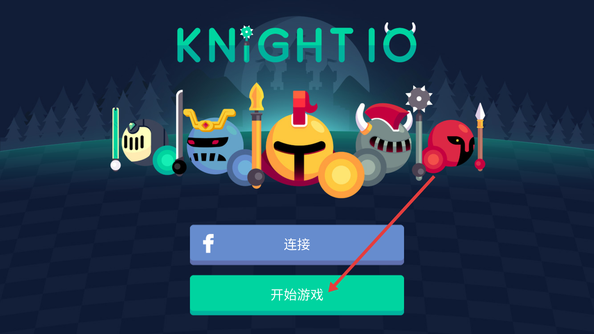 1、打开【Knightio】游戏界面,点击【开始游戏】按钮,开启骑士对战之旅。