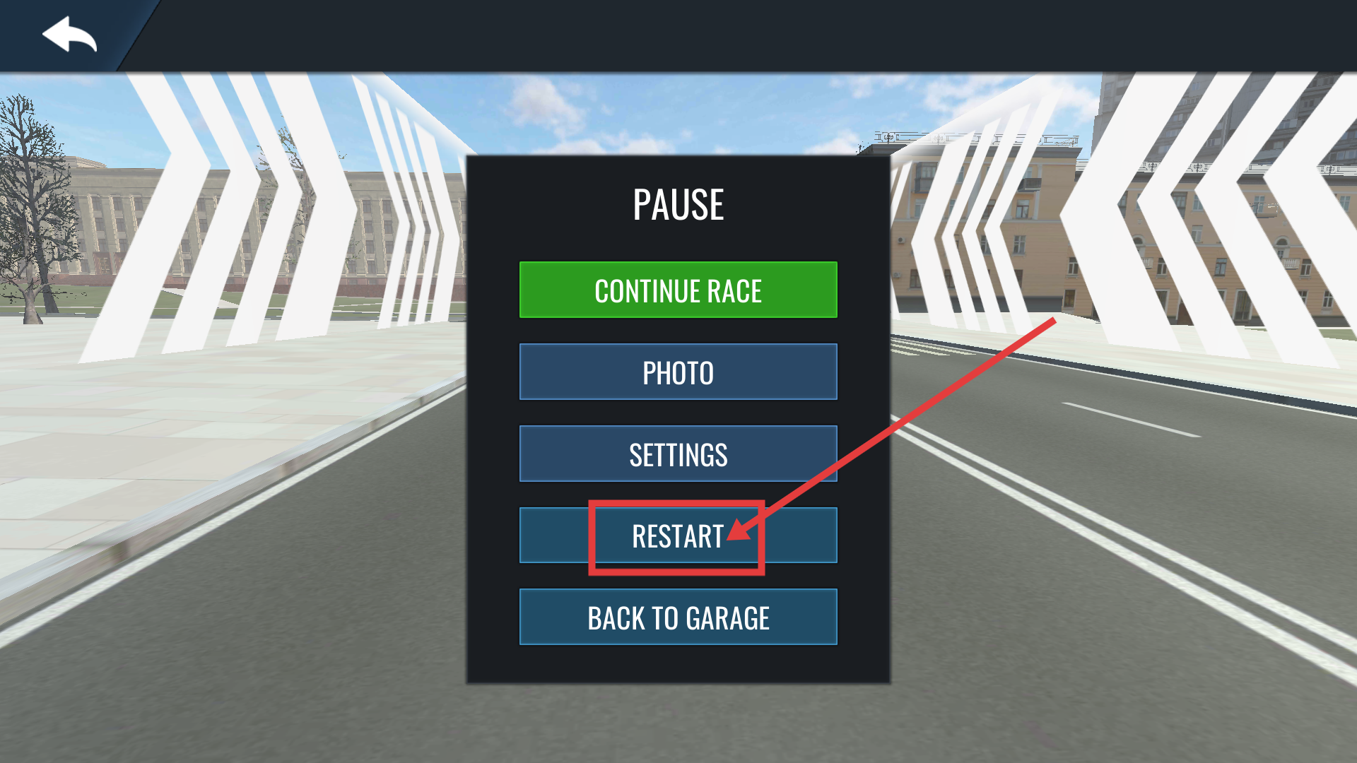 4、要是比赛中出现失误,可在暂停界面点击【RESTART】按钮重新开启比赛,通过快速重启挑战来更新成绩。