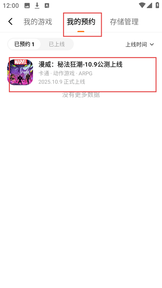4、我们还能进入【我的预约】页面,在这里可以看到自己预约的【漫威:秘法狂潮-10.9公测上线】游戏,便于查看预约情况。