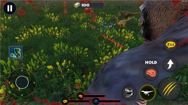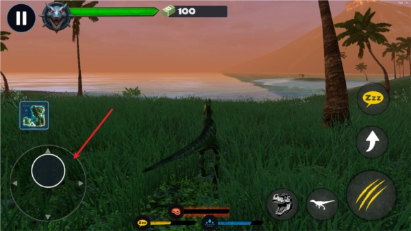 2、进入之后,我们通过左侧的摇杆来控制恐龙移动。