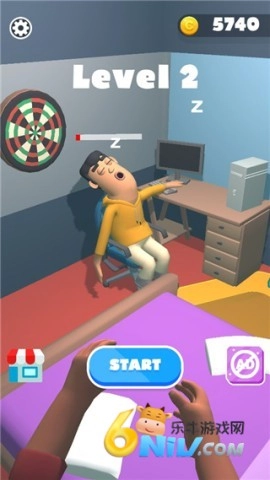 3、把枕头精准地扔向他,记得瞄准好!精准的投掷才能让他快速醒过来!