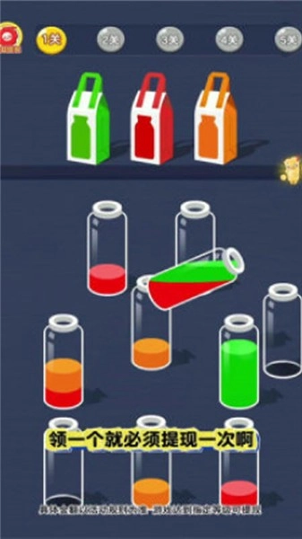快乐水瓶游戏是一款玩法十分简单的倒水排序红包游戏,玩家只需把相同颜色的水倒入不同容器,轻松就能完成倒水操作,将水更好地注入水管中。在游戏里,你可以运用不同的逻辑思维,更巧妙地规划各类策略,需要合理安排每一步操作,妥善分配液体与水管,高效完成排序任务,还能持续解锁丰厚的游戏奖励。