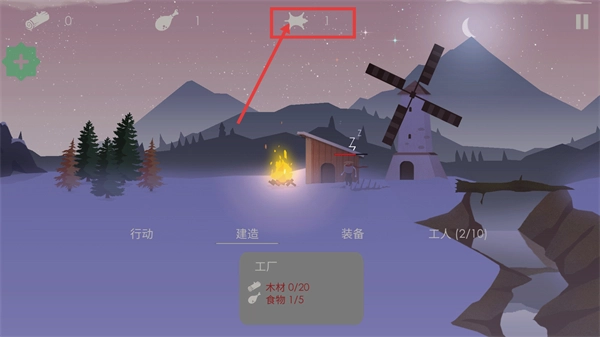 4、战斗结束后积累起来的【1】份资源,用于推进【工厂-木材0/20-食物1/5】的建造进度,以此逐步完善各类生存设施。