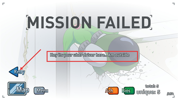 4、若出现【MISSIONFAILED】,点击【Retry】重新尝试,根据提示调整策略,继续完成任务。