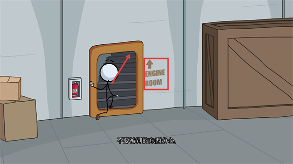 3、看到【Engine-Room】标识的入口,遵循【不要被别的东西分心】的提示,进入该区域继续任务。