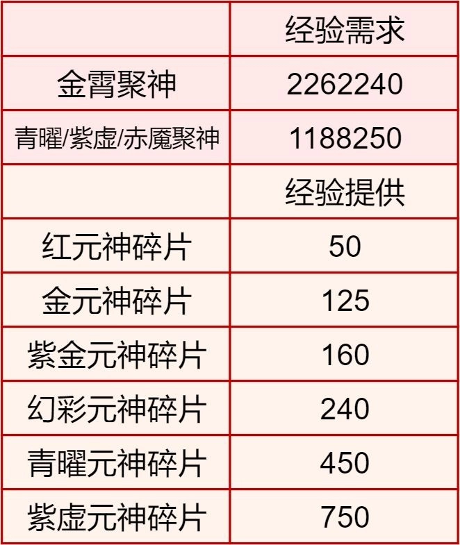 例如,原本用于将聚神提升到70级的经验,若用来升级金霄聚神,仅能提升至60级,而其综合属性则相当于原来聚神65级的水平。