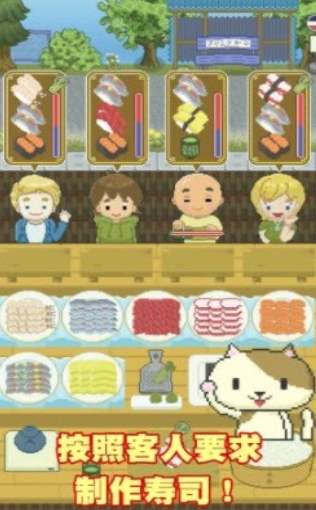 3、这是一款卡通风格的模拟商业趣味游戏,在游戏里你要经营属于自己的寿司摊。