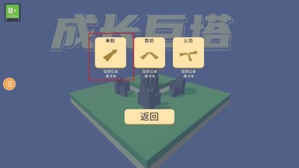 2、有三种塔防玩法模式:单防、双防、三防,以“单防”玩法为例。