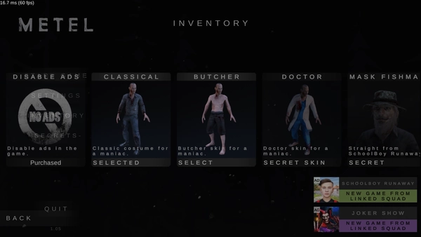 2、接着,我们就能够看到非常清晰的游戏主界面,在这里包括了:start game、settings、inventory、secrets等等,我们选择start game。