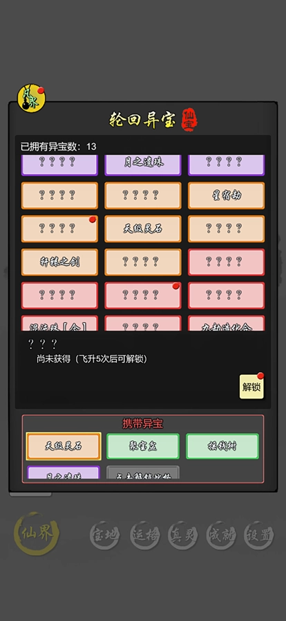 5. 高分/快速成长技巧 初期攒钱:凡界专注倒卖丹药原料(利润高且需求大)。 飞升准备:突破元婴前囤积渡劫丹药,避免飞升失败。 仙器搭配:优先选择攻击+吸血属性,单挑妖兽更轻松。