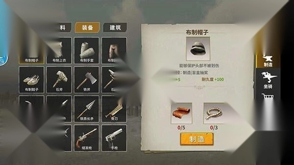 4、背包下方是制造转区,可以通过获取到的资源制造一些实用物品。