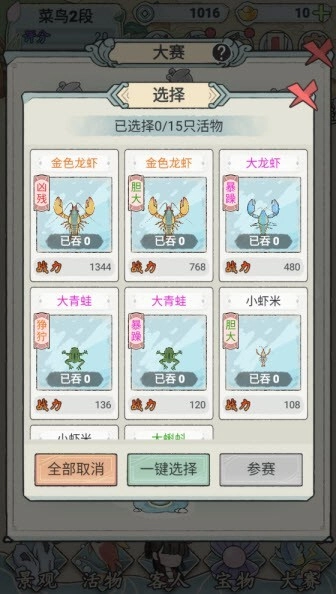 4、参与这场大赛,挑选出战力最为强悍的活物去参赛,击败对手,最终成为荷塘之王。