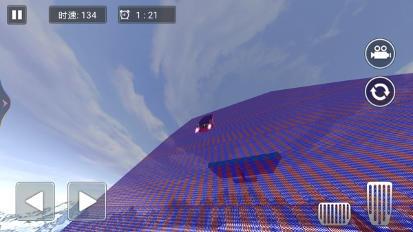 4、留意观察当前时速,借助右侧的加速踏板来维持速度,同时通过操作左右方向键调整赛车的姿态,防止因赛道倾斜而致使赛车失控,从而顺利完成挑战。