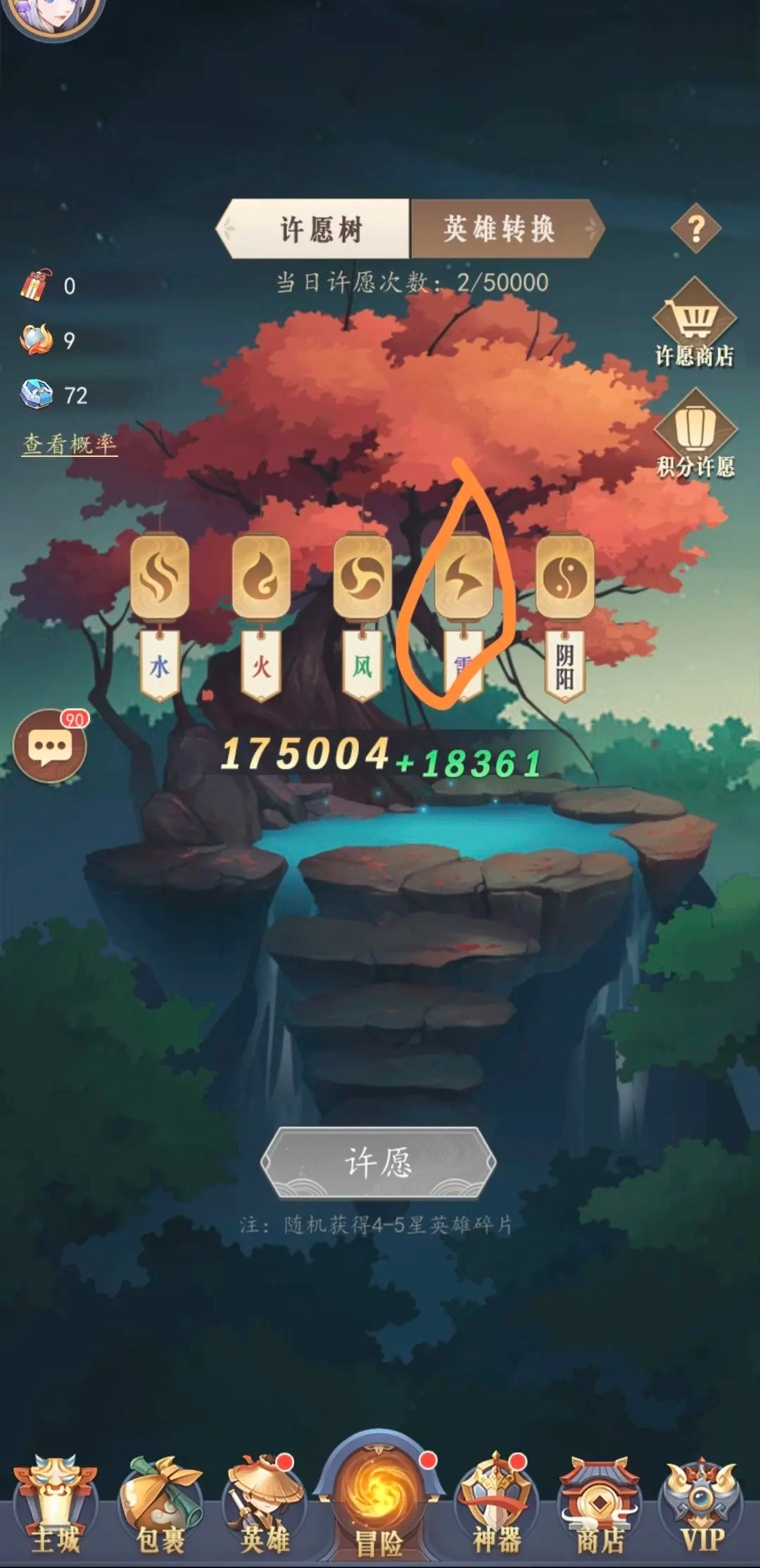 进入游戏后跟着左下角的新手指引操作,等走到许愿袋许愿那一步,关键的地方就到了——务必选择雷系许愿,这点非常重要,具体原因后面会说明。