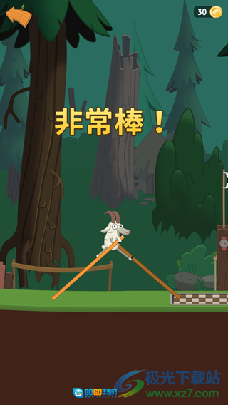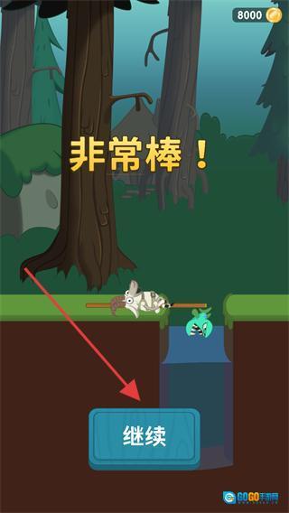 4、顺利越过障碍后会显示【非常棒!】,点击【继续】按钮,即可进入下一个关卡环节继续挑战。