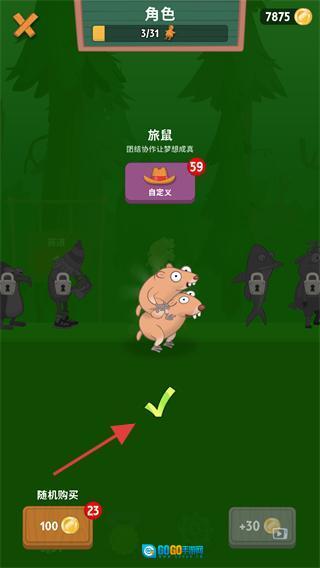 1、在角色界面选择【旅鼠】角色(解锁该角色需要消耗【59】个碎片),确认选择无误后点击对勾按钮,即可进入关卡开启挑战。