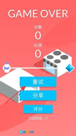 4、要是跳瓶挑战失败,出现【GAME-OVER】界面,点击【重试】按钮就能重新开启挑战。