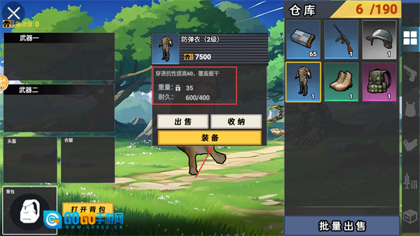 1、仓库里建议优先装备【防弹衣-2级】,点击装备按钮就能提升防护力,让前期探索时的生存能力更强。
