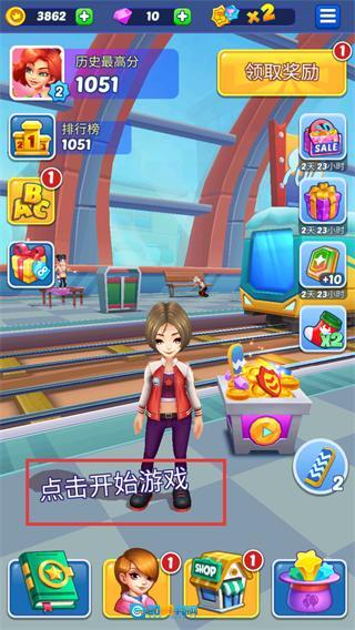 1、点击红色框内的【点击开始游戏】按钮,即可进入跑酷核心玩法环节。