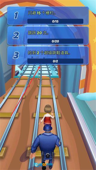 2、打开跑酷任务界面,查看三个任务后,沿着轨道进行跑酷操作。