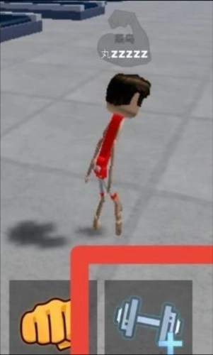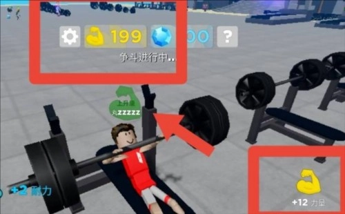 1. 打开罗布乐思创作空间,找到并进入《力量传奇》游戏;进入游戏后,点击底部的哑铃道具使用,以此来增加基础力量值。