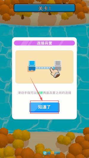 2、根据提示“滑动手指”,将两座兵营连接成一条线,兵力就会马上汇合。
